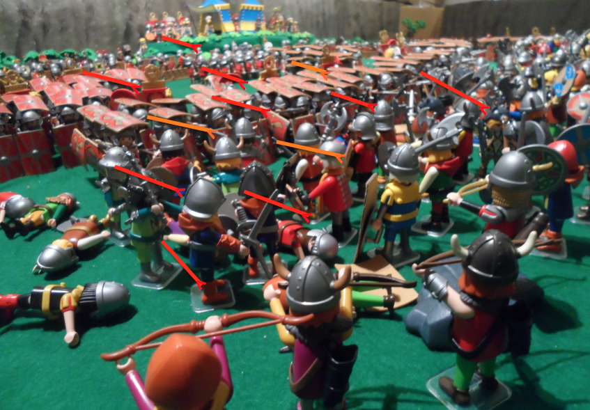 Résumé de la partie précédente : L’Armée romaine affronte une horde de gaulois. Celle-ci est plus nombreuse que prévu, et les Romains décident de retourner sur leurs lignes de défense à l’arrière…