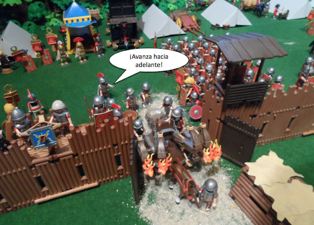 Inmediatamente, los legionarios que estaban dentro corrieron hacia las murallas.